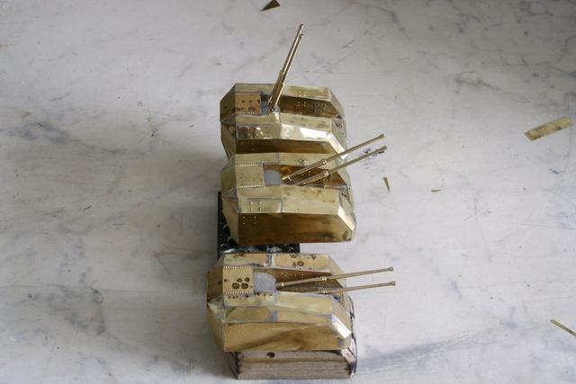 die 20,3 cm Türme aus Messing wiegen 104 g - 110 g , mit den Kanonen .