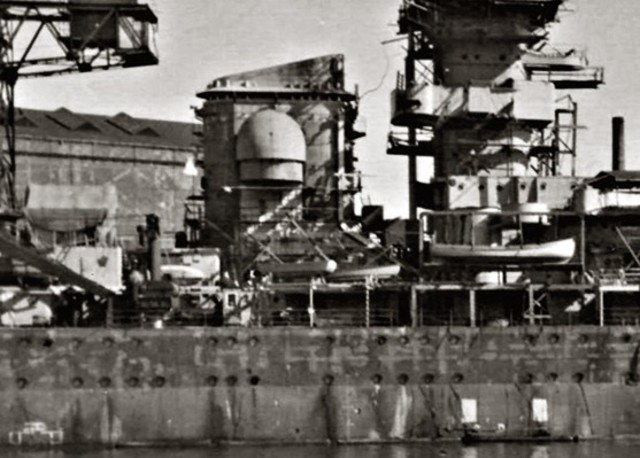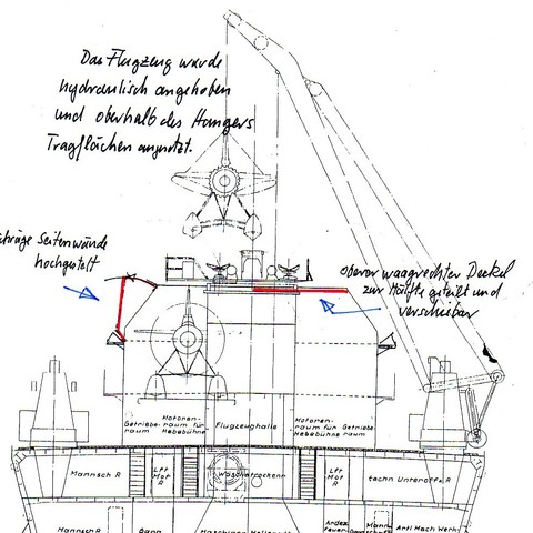 der Hangar war für Blücher geplant und steht hier auf dem Rumpf .