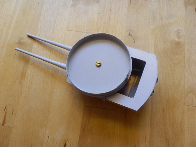 Der Turm wird nur über den Süllrand gestülpt . Servowechsel erfolgte durch die Öffnung unter dem Turm D .